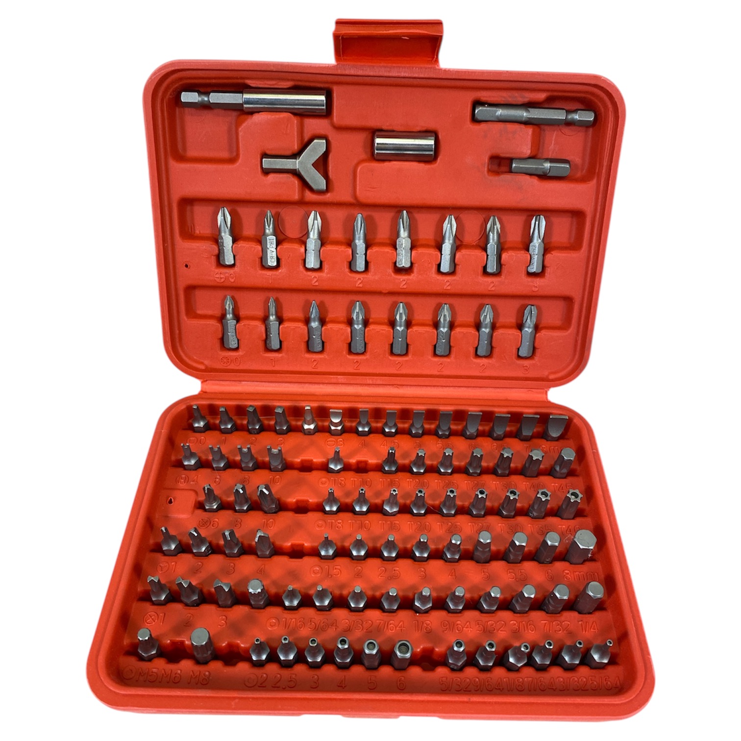 Screwdriver bits, approximately 90 of them. The bits come in a carrying case. All tools have been checked by our tool ninjas and are in good working condition. Pickup during opening hours.