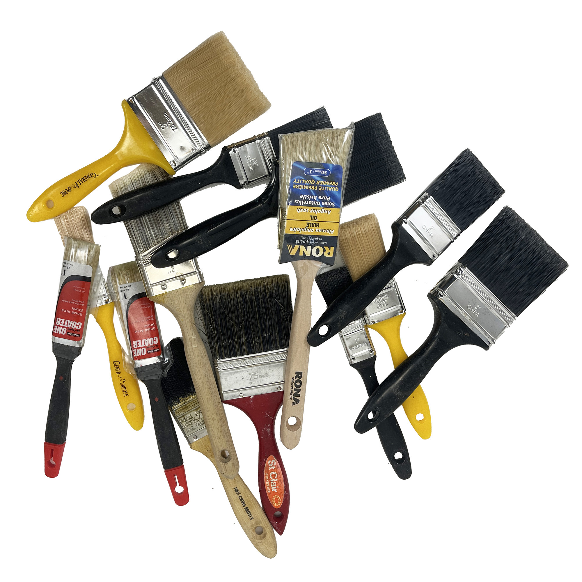 A selection of fresh paint brushes for various types of applications. Those shown are just a sample. You get to choose the one you want when you come in to pick it up. Pickup during opening hours.